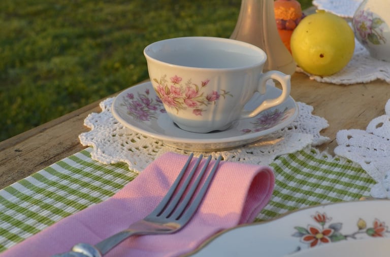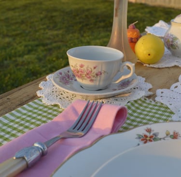 Des assiettes, des tasses mais aussi du linge de table, Partea a un large choix de vaisselle vintage dépareillée pour tous vos évènements.